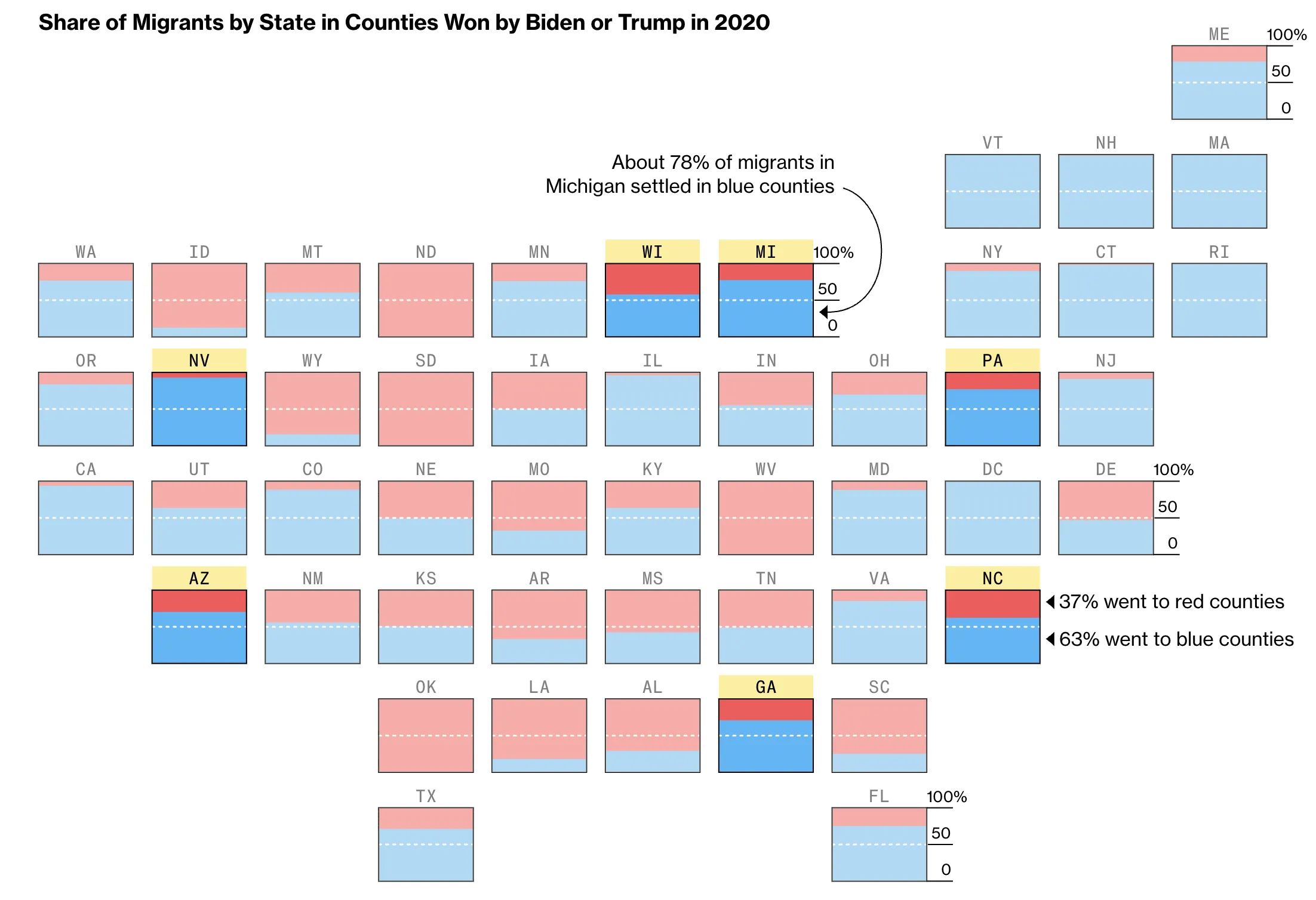绘制美国移民最多的摇摆州 - 彭博社