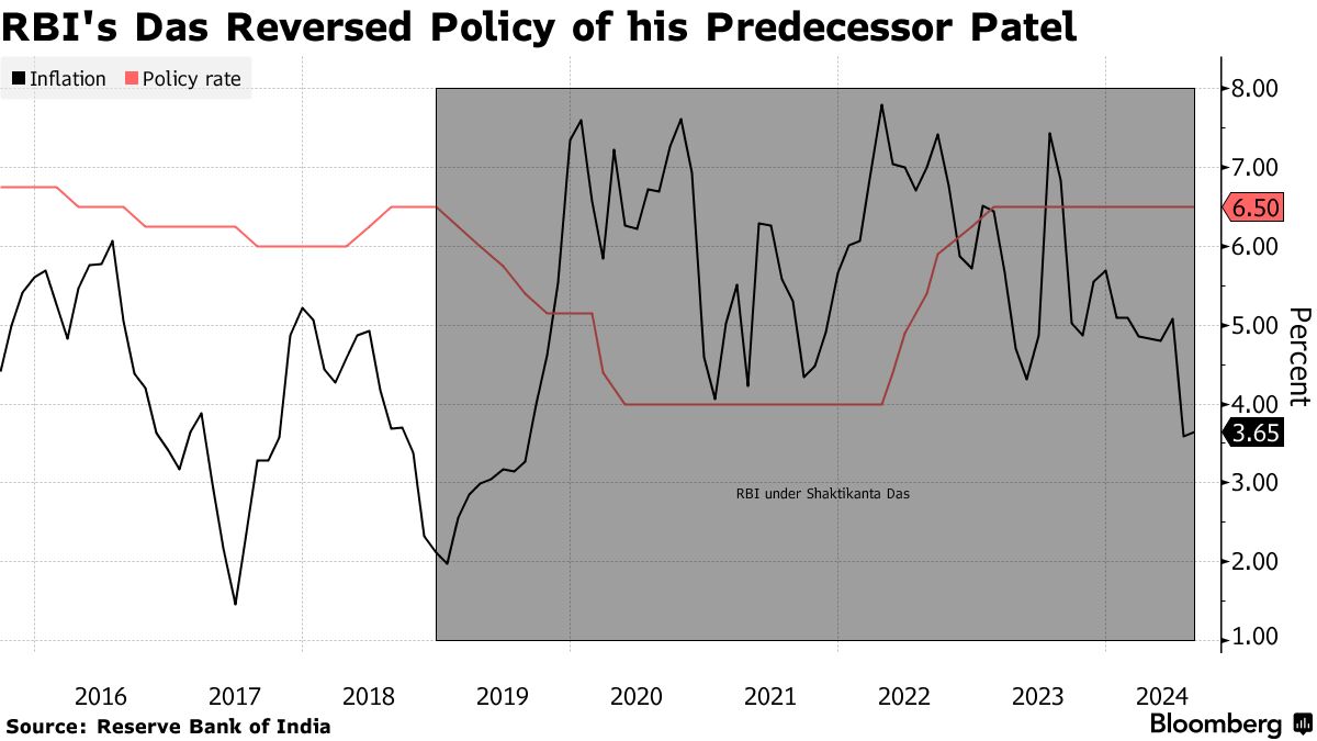 印度储备银行领导层的变化可能带来广泛的货币政策转变。乌尔吉特·帕特尔在达斯于2018年12月接任之前是印度储备银行行长,他是一位政策鹰派,即使在2017年6月通胀降至创纪录的1.46%时,也拒绝了降息的呼声。在达斯2019年2月的第一次货币政策委员会会议上,他迅速降息,出乎意料。