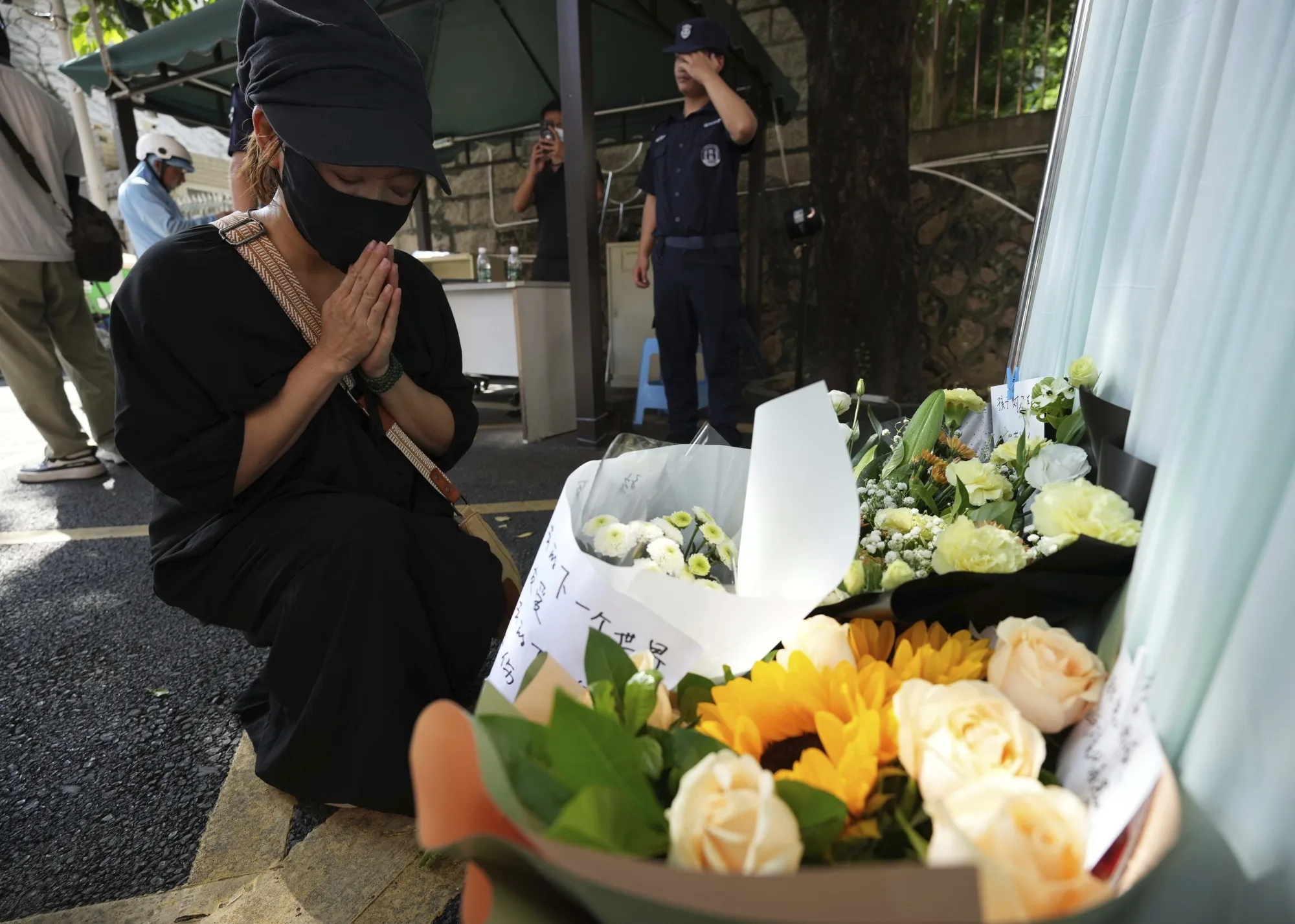 一名女性为在上学途中被刺的日本男孩祈祷。摄影师:大原一郎/读卖新闻虽然一些人抱怨这些课程无聊至极,但它们在将关键事实灌输给年轻人方面也很有效。例如,容易找到能够迅速说出中国所称的抗日战争重要日期的人。