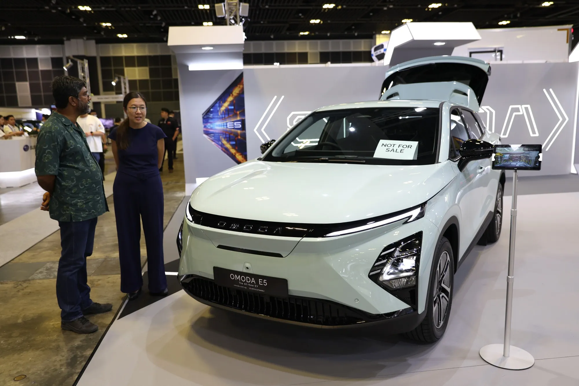 奇瑞汽车有限公司 Omoda E5。摄影师:Lionel Ng/Bloomberg奇瑞汽车有限公司将电动车生产进军欧洲的目标推迟了一年,此前欧盟对来自中国的电动车进口征收了临时关税。