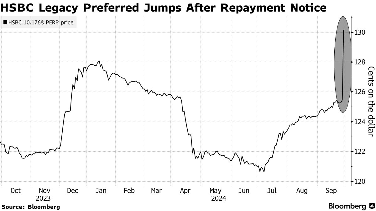 汇丰控股有限公司 正在偿还一种在2000年发行的资本,触发了大幅价格跳升,因为它继续清理在全球金融危机后进行改革后变得过时的金融工具。