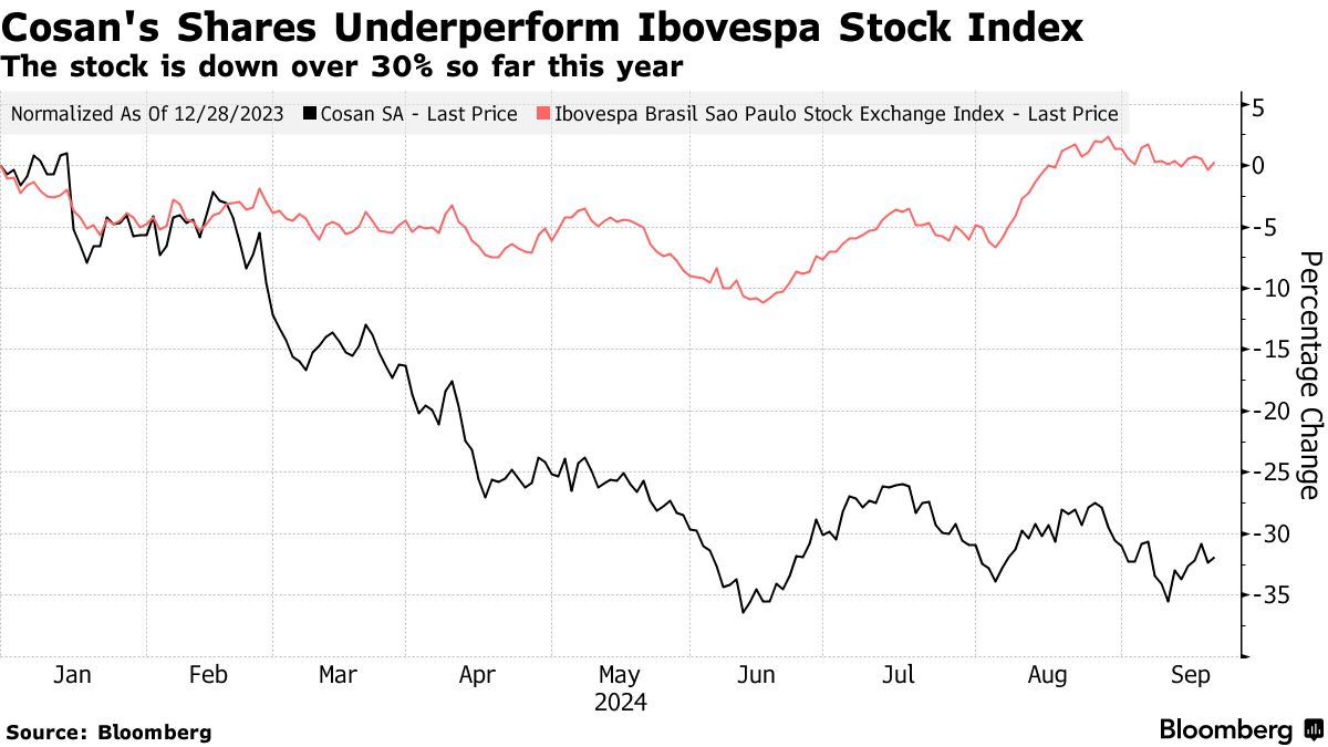 Cosan SA——一个从润滑油生产和汽油分销到铁路运输和天然气家庭供应的糖和乙醇帝国——本月股价已跌至四年多来的最低水平。自2022年决定借债购买淡水河谷的少数股权以来,投资者对其有效使用现金的能力持怀疑态度,而该股自那时以来已贬值,并被BTG Pactual SA认为回报“平庸”。