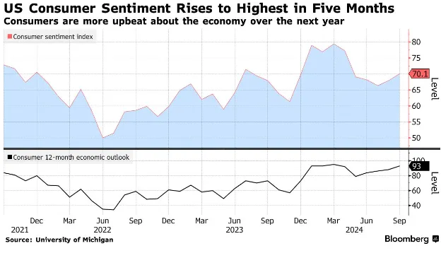 消费者信心在九月底继续上升,达到五个月来的最高点,因 对经济的更多乐观,这是在联邦储备委员会降息之后。