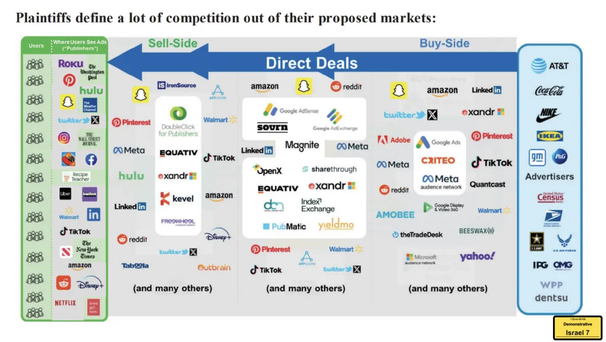 字母表公司的搜索巨头辩称,它没有法律义务使其广告技术产品与竞争对手提供的产品兼容,并且在互联网上,广告商除了购买网站广告外还有许多机会。谷歌在广告支出方面与社交网络、视频流媒体网站和其他应用程序展开激烈竞争,其辩护律师试图表明这一点。