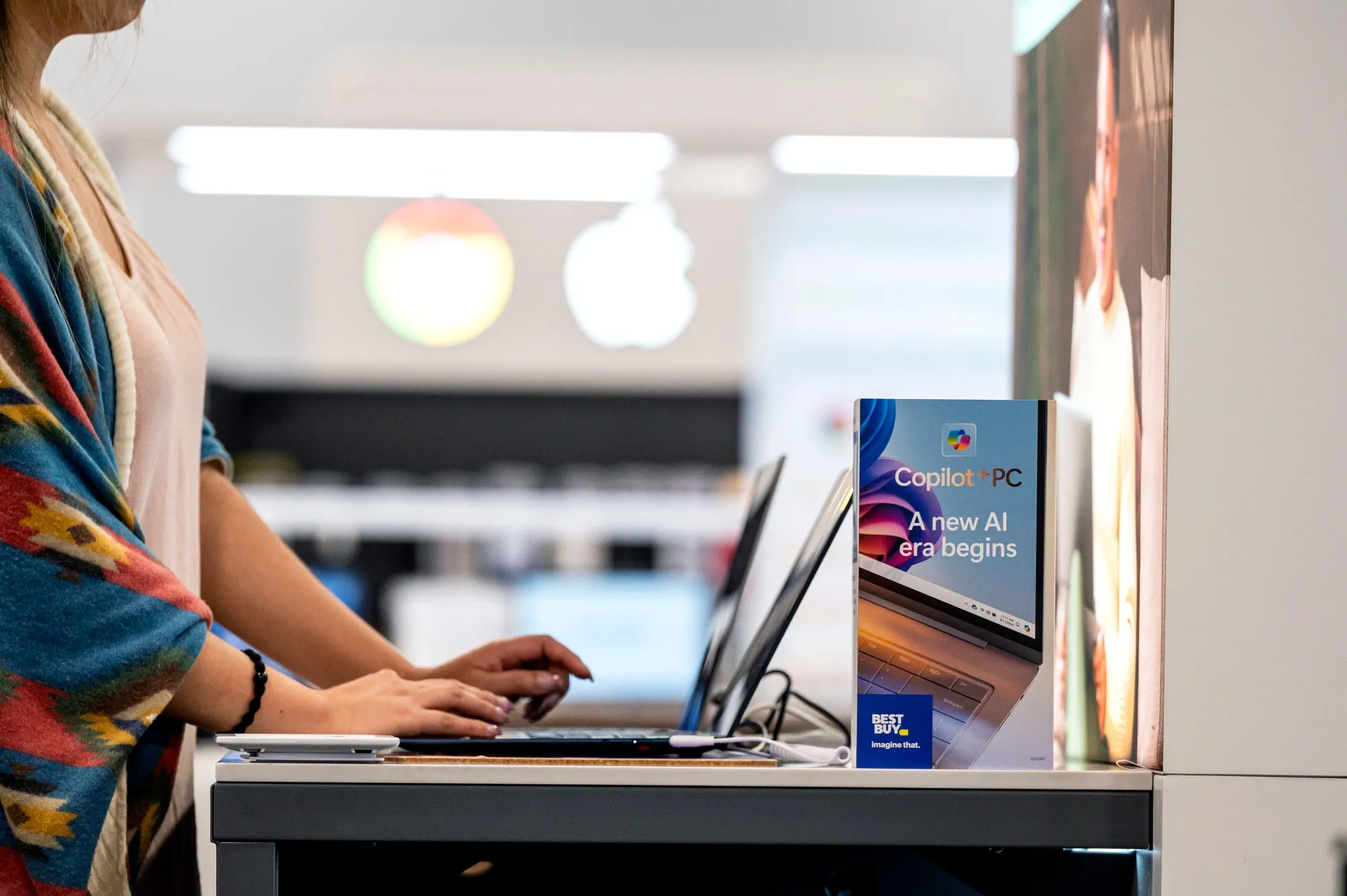 在加利福尼亚州联合市的百思买商店中,微软Copilot+ PC的标识。