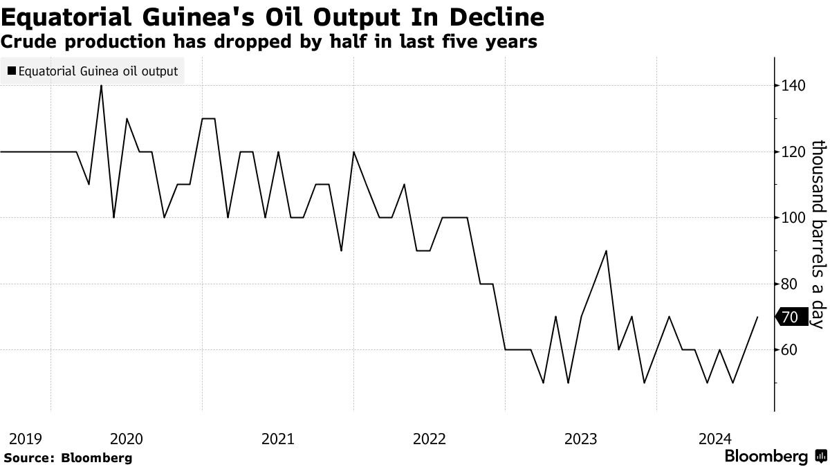 赤道几内亚的原油产量在过去五年中下降了一半。