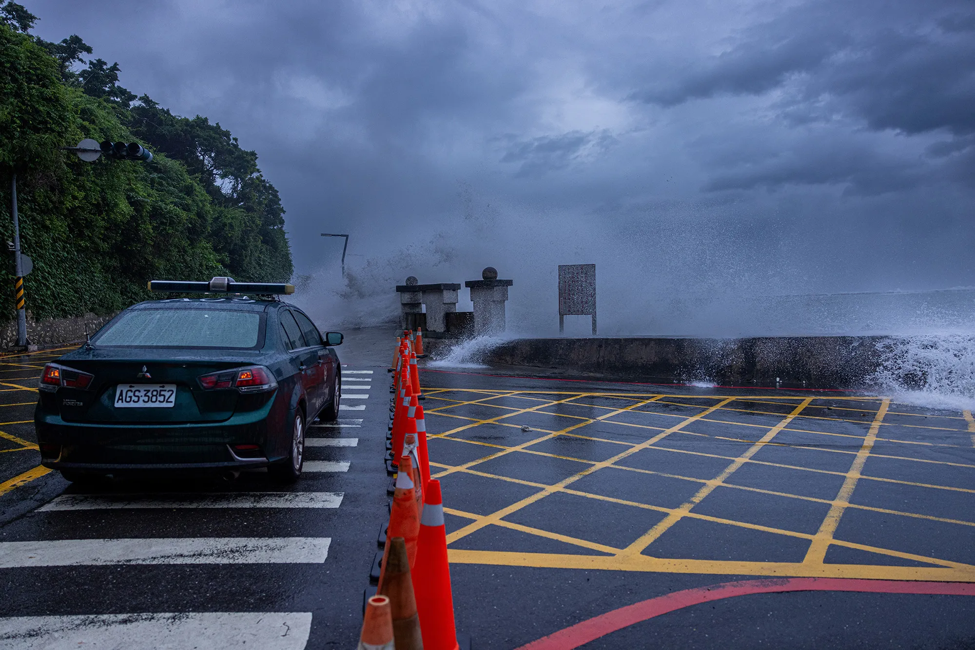 在10月1日,台湾高雄,台风克拉通来临前,海岸线附近的封闭区域。摄影师:安娜贝尔·池/盖蒂图片社随着超级台风克拉通带着强风和大雨逼近岛屿,台湾将关闭其2.5万亿美元的股市。