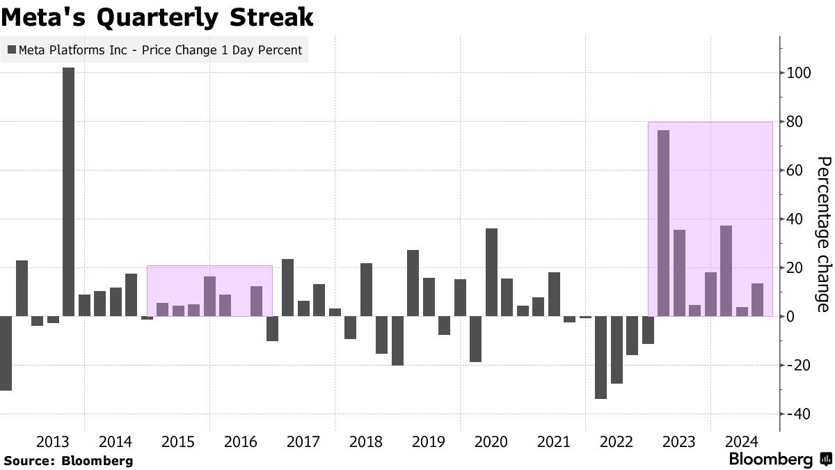 Meta Platforms Inc.的股票刚刚结束第三季度,涨幅为13.5%,标志着连续第七个季度的上涨。这是自2016年以来Facebook母公司最长的正增长周期。在这七个季度的上涨中,股票上涨超过375%,近期的强劲反映了该公司从人工智能中受益的 潜力。今年该股票上涨超过60%。