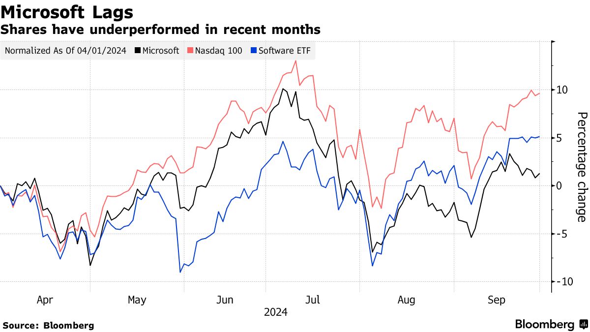 微软(MSFT)股票因“人工智能疲劳”和高估值限制反弹而滞后 - 彭博社