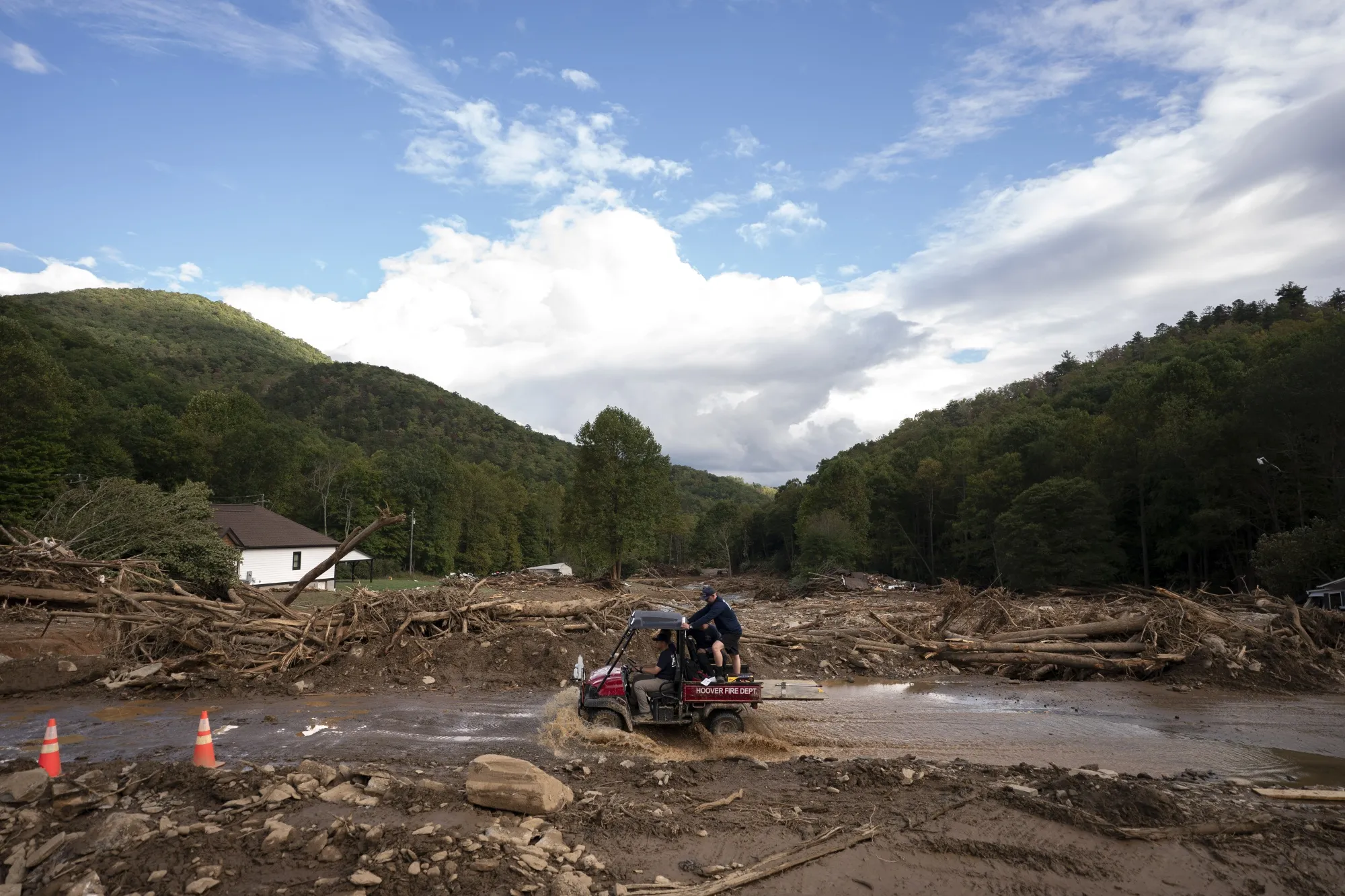 飓风海伦过后,北卡罗来纳州黑山附近克雷格溪的风暴损害,发生在9月30日。