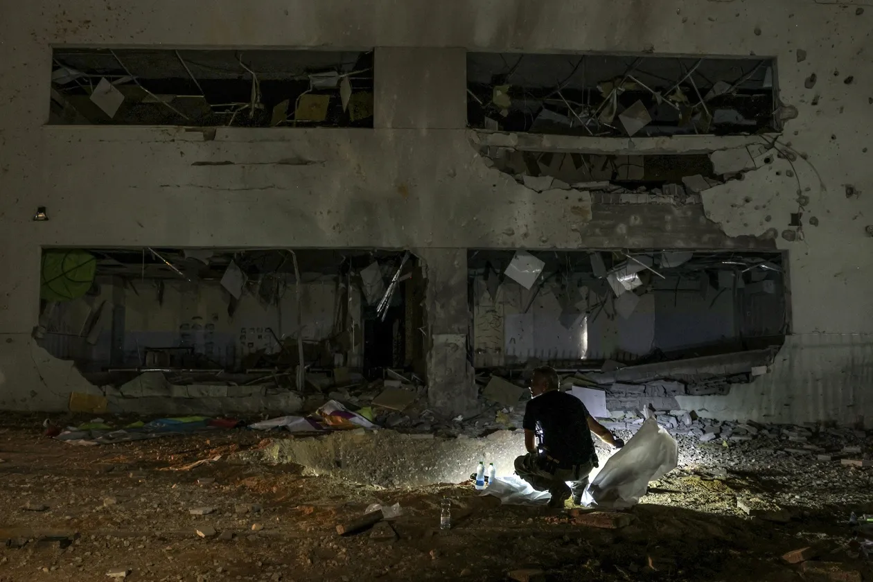 以色列盖德拉在10月1日空袭后严重受损的学校建筑。