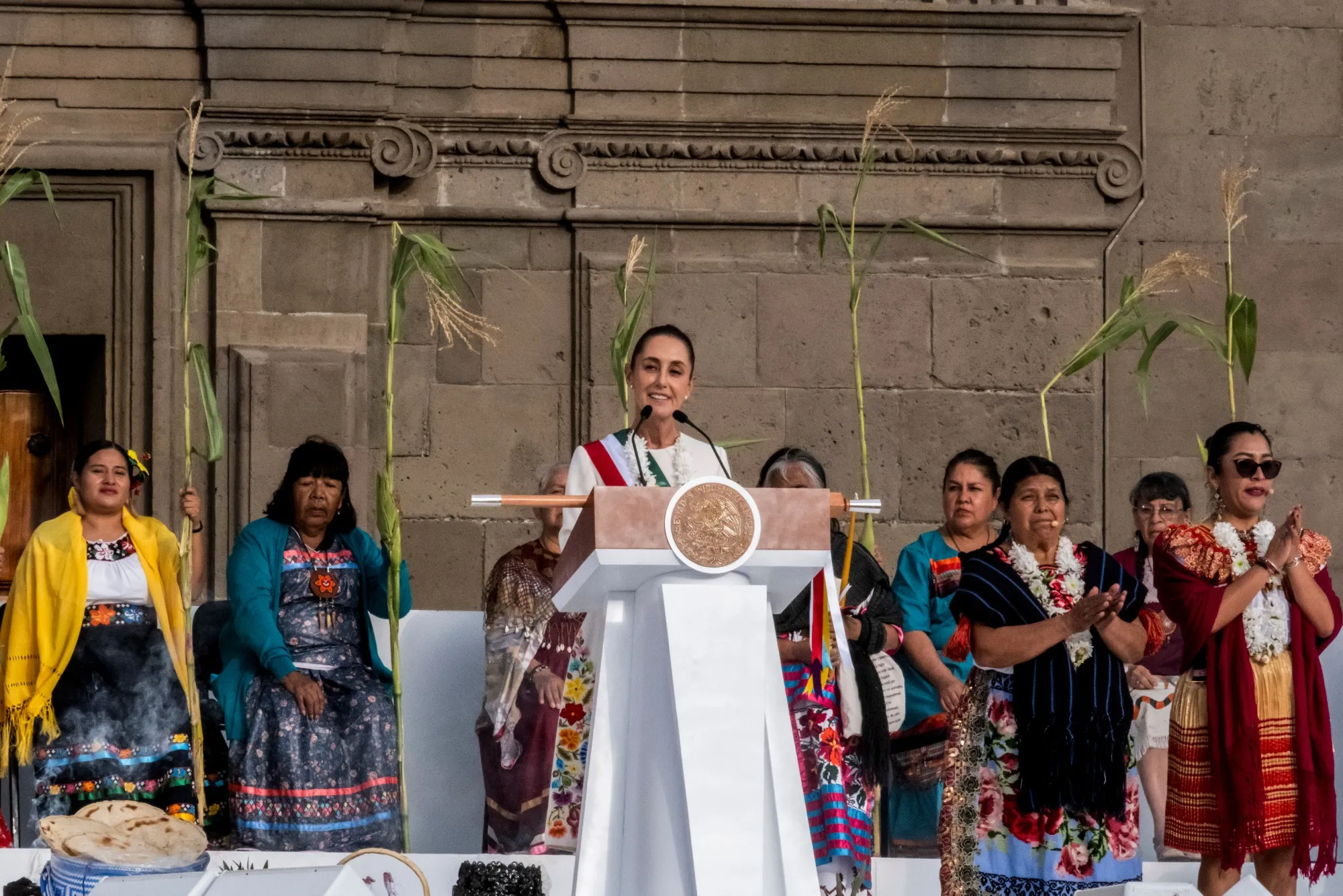 在国会和外国贵宾举行的就职仪式后,谢因鲍姆在当天的第二次公开讲话中,向索卡洛公共广场的支持者列出了100个承诺。