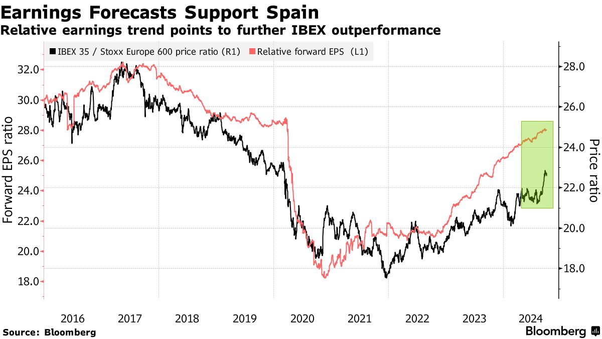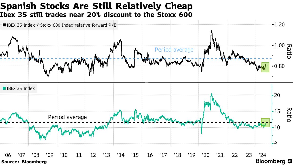ING西班牙投资策略负责人弗朗西斯科·金塔纳表示:“西班牙股票受益于多种顺风因素,例如由旅游和消费驱动的宏观条件良好。” “它们提供高股息,并且在已经便宜的欧洲市场中估值更低。”