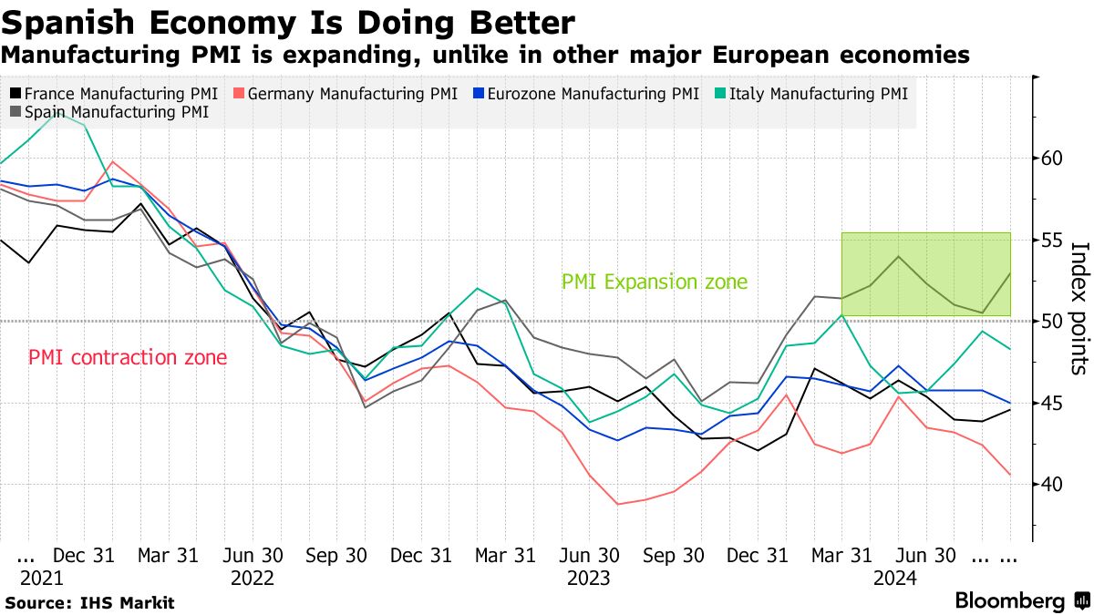 尽管周二出现回调,但西班牙的股票今年超越了其他主要欧洲市场,银行因强劲的经济而领跑。而且不仅仅是股票:投资者正在涌入该国的债务。自2007年以来,法国的债券首次被认为风险更高于其南方邻国的债券。