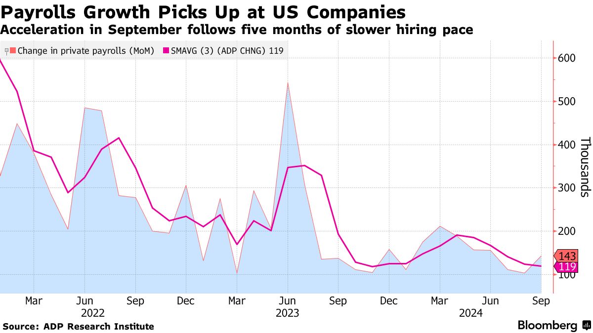 2024年9月ADP就业报告:私营部门工资单增幅超出预期 - 彭博社