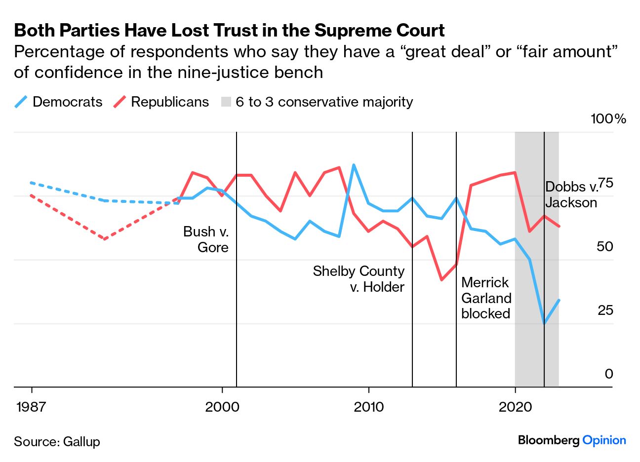 “两党成员现在对法院的信任程度低于1980年代,”诺亚写道。虽然接受 奢华礼物 的急切心态是问题的一部分,但推翻长期以来关于堕胎、隐蔽武器、污染、政教分离、平权行动、监管和总统豁免的先例也损害了法院的公信力。“特朗普的三位任命者从根本上改变了法院的权力平衡,”他说,法院的快速工作“似乎急于实现一个 长期渴望的保守派宪法革命。”