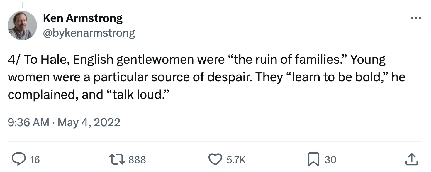 就我而言,我认为诺亚的评估非常准确。引用17世纪的英国律师马修·黑尔爵士作为任何关于女性权利的权威是荒谬的,正如阿利托在Dobbs裁决中所做的。我也有点感觉这个家伙不会喜欢我的通讯: