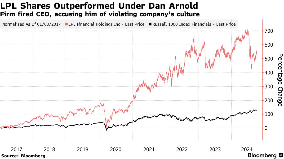 阿诺德的解雇——连同失去的遣散福利和自动没收的未兑现股权奖励,无论是已归属还是未归属——是在一家外部律师事务所的调查和特别董事会委员会的建议之后进行的,该委员会发现他对员工发表了违反LPL规则的言论。该公司没有透露他所说的内容。