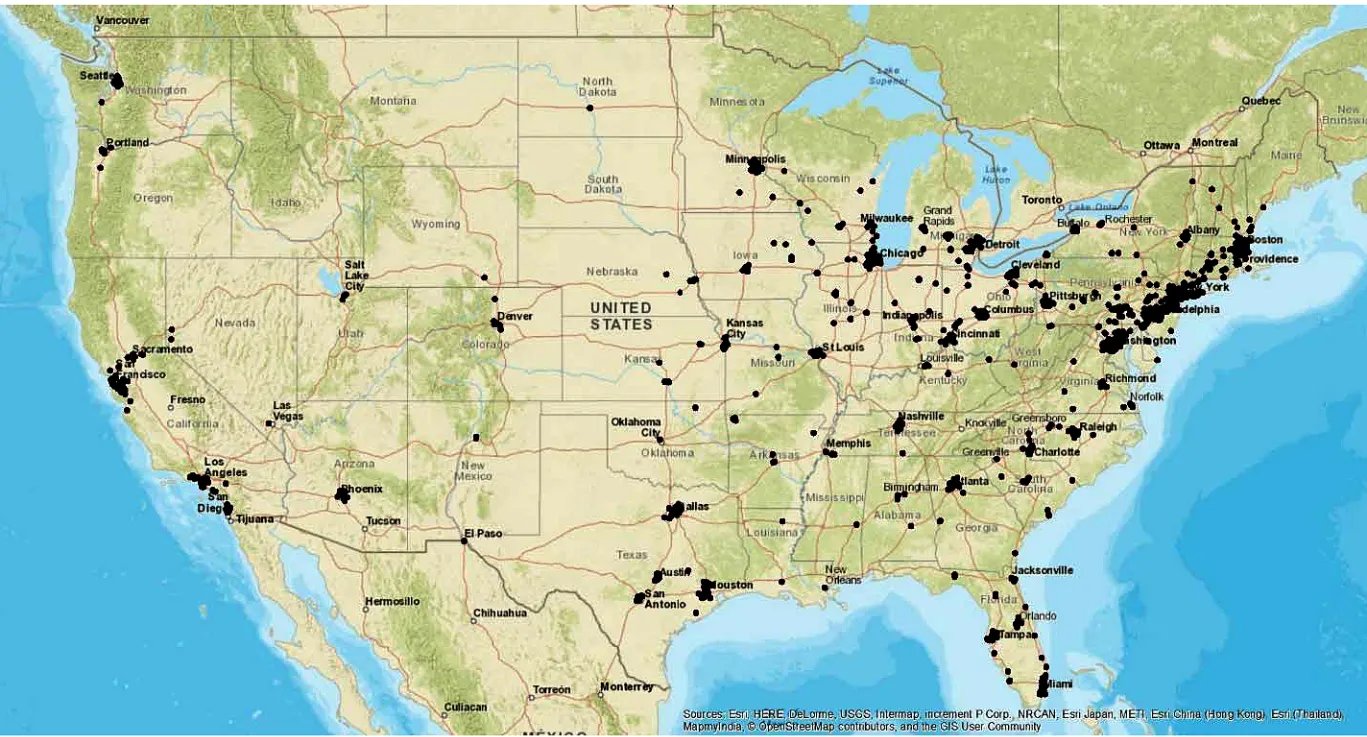 这张地图由哈里斯堡大学在一份债券发行文件中发布,显示了学生们在2016年参加一个周末课程时的出发地。来源:有限发行声明,达芬县一般管理局大学收入债券,2017“他们中有百分之九十九的案例类似,”他说。“他们没有在抽奖中获得名字。他们有着惊人的工作,为惊人的公司工作,他们只是想买更多的时间。没有人是为了获得学位而来。”