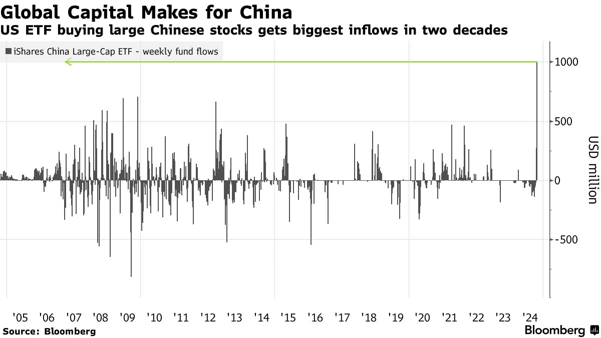 尽管出现回调,资金经理们表示,由于刺激措施,中国的前景已经发生了变化。汇丰银行策略师阿拉斯泰尔·平德将中国股票评级上调至“超配”,并表示“进入反弹的时机还不算太晚。”与此同时,摩根士丹利的劳拉·王表示,随着政府可能宣布财政措施以进一步推动已宣布的刺激政策,该国的股票可能再上涨10%至15%。
