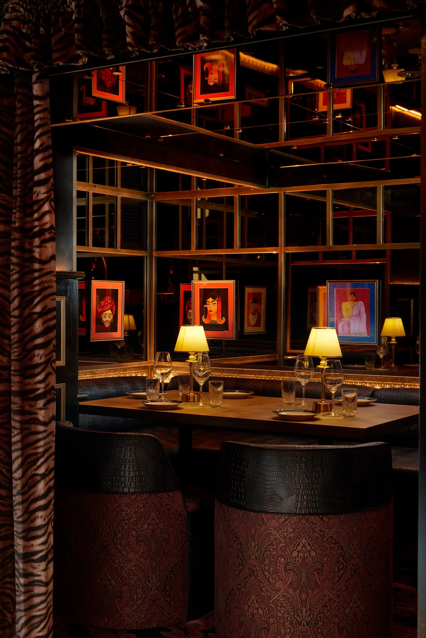 动物图案为大使俱乐部的丛林房间增添活力。摄影师:JKS 推荐:伦敦市中心的超级时尚印度美食