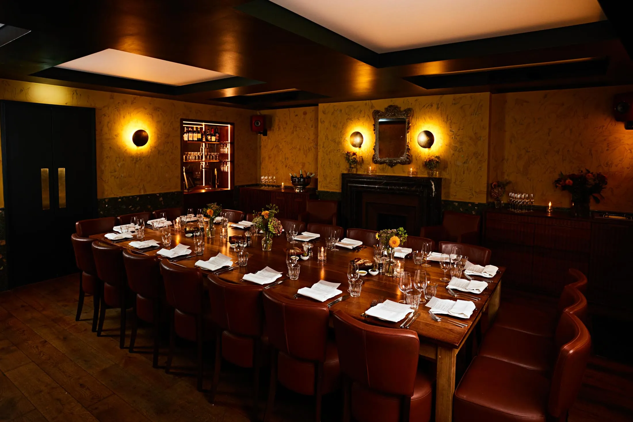 这家灵感来源于希腊的餐厅,位于一条隐秘的楼梯上,自四月开业以来变得非常受欢迎。私人餐厅不太为人所知,但它让人联想到一个时尚的地中海宫殿,墙壁为土色调,桌子优雅。私人酒水附属空间可容纳8到30位客人,提供为共享而设计的盛宴菜单,包括经典的开胃菜(想想绿香菜的鹰嘴豆泥、茄子酱)、热薯条、海鲈生鱼片和配有青酱的烤乳猪。价格:十二月菜单为每人85英镑。