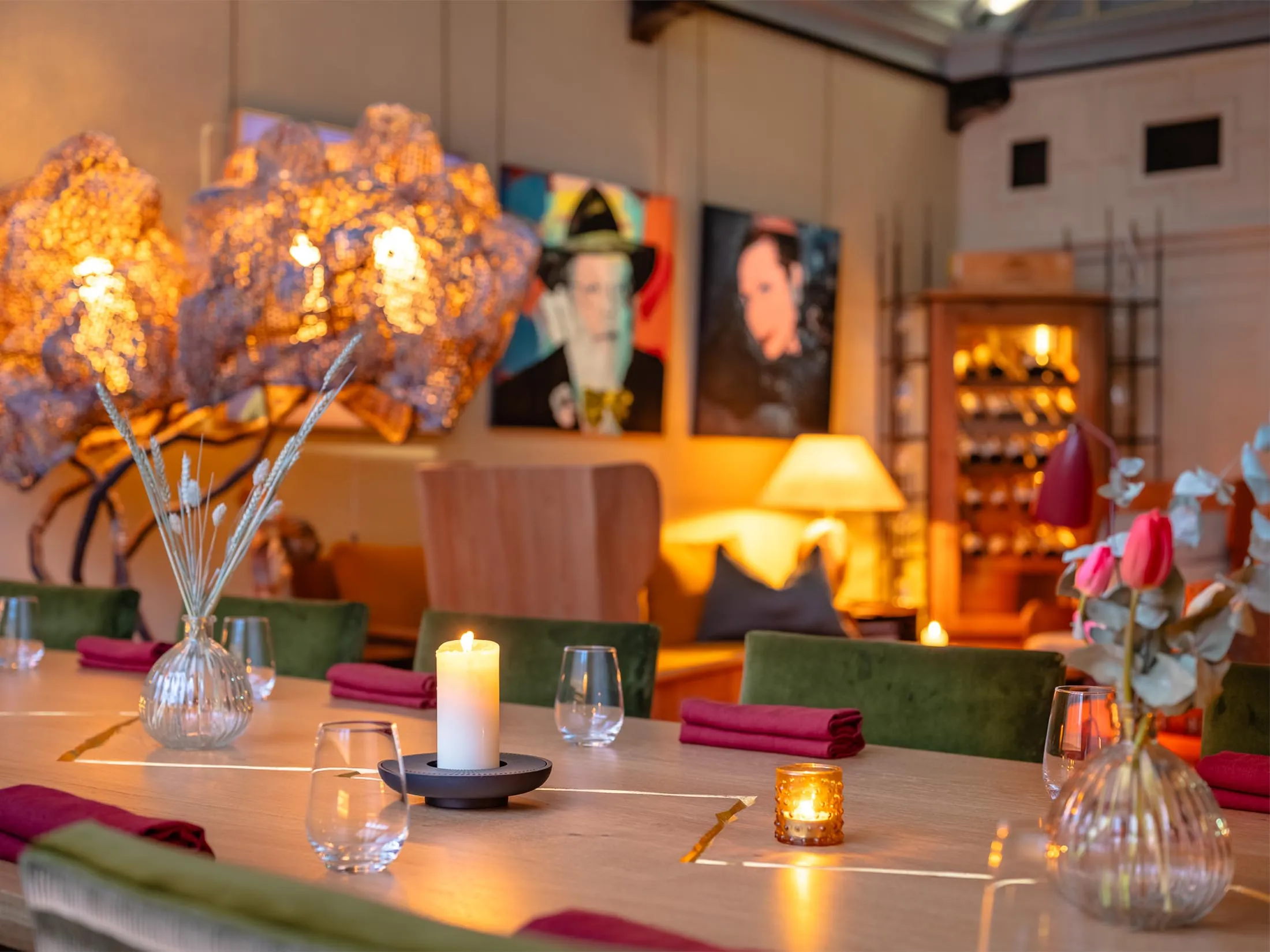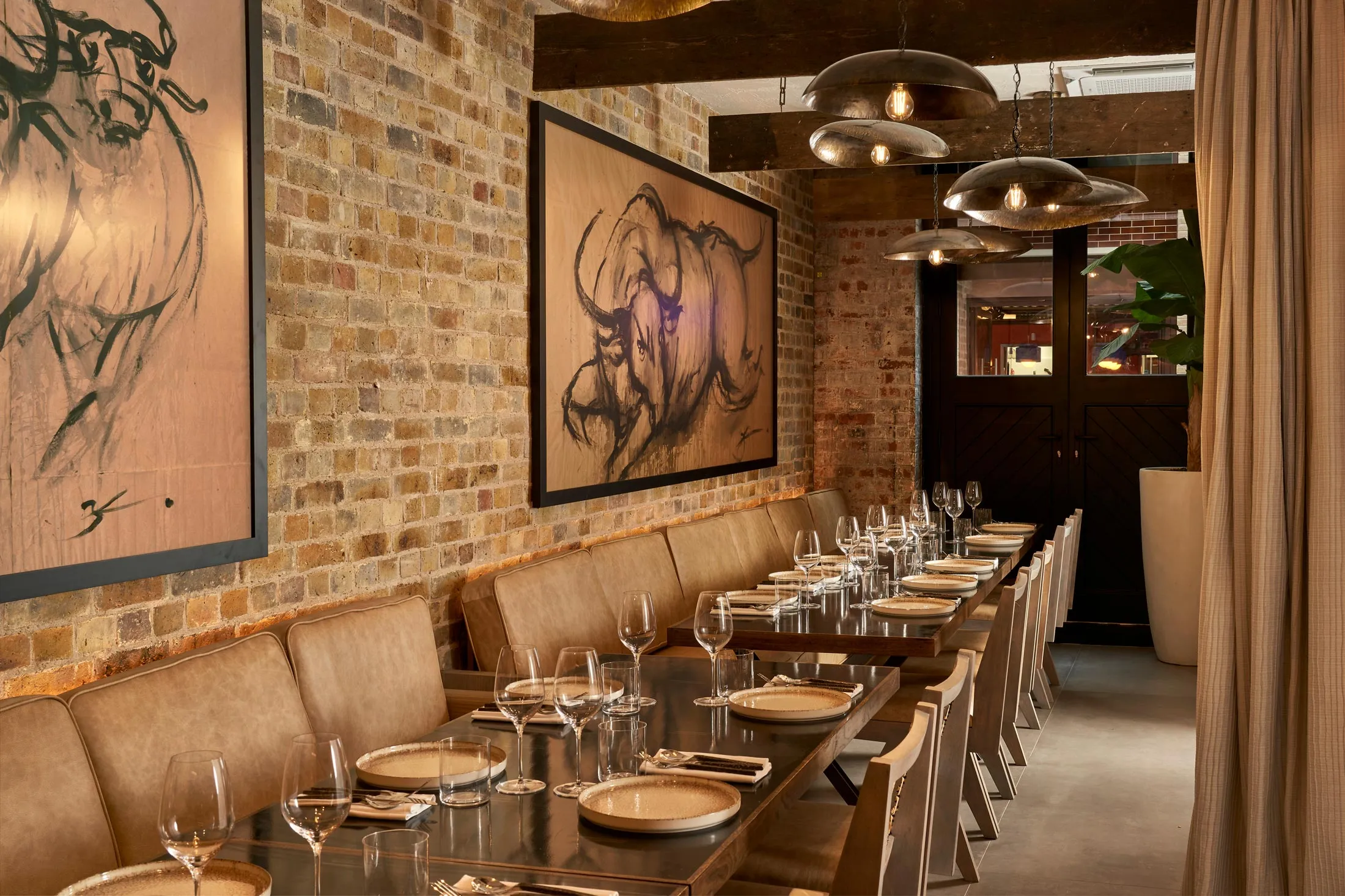 Kalamba East的私人餐厅装饰有水牛的图片。摄影师:Milo Brown/Kalamba East 为:南亚盛宴