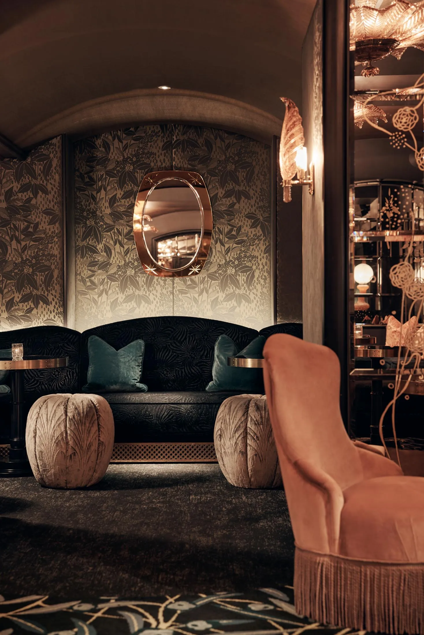 新开张的印度餐厅大使俱乐部,方便地位于邦德街附近的购物区,拥有三间城中最美的私人餐厅,适合小型聚会。丛林房间是一个可容纳六人的小隔间,天花板上悬挂着动物图案,墙上有烟熏镜子。塔马莎房间可容纳10人,隐藏在帘子后面,装饰以金色(你可以在DJ台的正后方找到它)。拉贾拉尼房间可容纳12人——这是一个装饰艺术风格的空间,充满了佩斯利图案。三间房间的套餐菜单包括鸡肉提卡配哈里花生酸辣酱和奶酪提卡等选项。价格:最低消费从£600到£1,400不等,具体取决于房间。