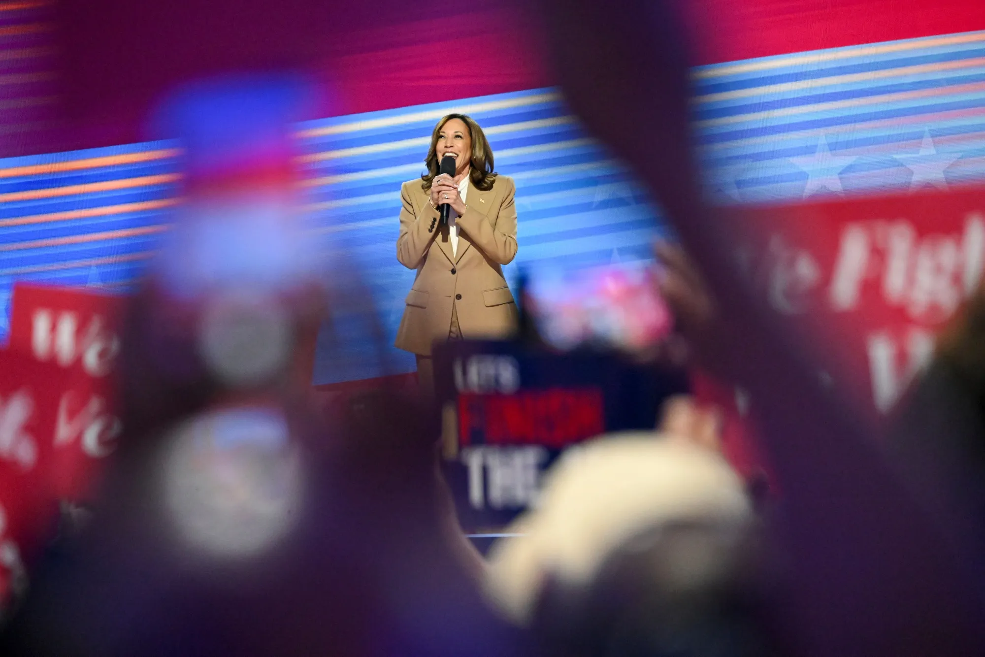 卡马拉·哈里斯在2023年8月19日于伊利诺伊州芝加哥的民主党全国大会上。摄影师:维克托·J·布鲁/彭博社无论她作为潜在总统的局限性如何,哈里斯正在利用对多布斯裁决的反对作为对特朗普的武器。这位共和党前总统为这一裁决感到自豪,因为他任命了三位创造了多数派的最高法院法官。他表示希望将堕胎监管留给各州。10月1日,他表示他将否决一项“联邦堕胎禁令”,这表明他在这一问题上感受到的压力,此前他曾暗示他会支持一项将该程序限制在怀孕前15周的提案。