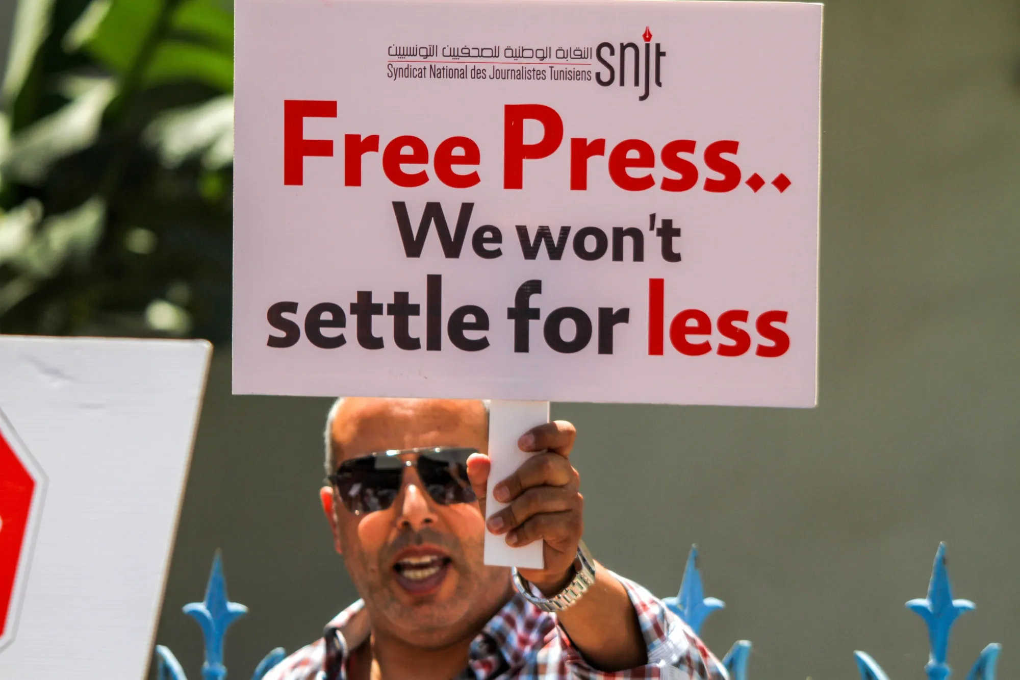 2022年5月27日,支持突尼斯记者的集会。摄影师:Hasan Mrad/DeFodi Images News/Getty Images这清楚地说明了北非国家自2011年长期独裁者齐纳·埃尔·阿比丁·本·阿里被推翻以来时钟倒退了多远,点燃了从埃及到利比亚、叙利亚和也门的一波阿拉伯起义。