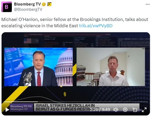 今天在彭博电视台的权力平衡早间版中,主持人乔·马修和凯莉·莱因茨采访了布鲁金斯学会的高级研究员迈克尔·奥汉伦,讨论中东日益升级的暴力。
