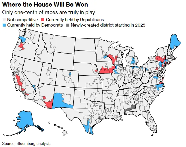 纽约和加利福尼亚,在总统选举中常常被忽视,正在成为潜在的 关键战场,在对控制众议院的紧张斗争中。