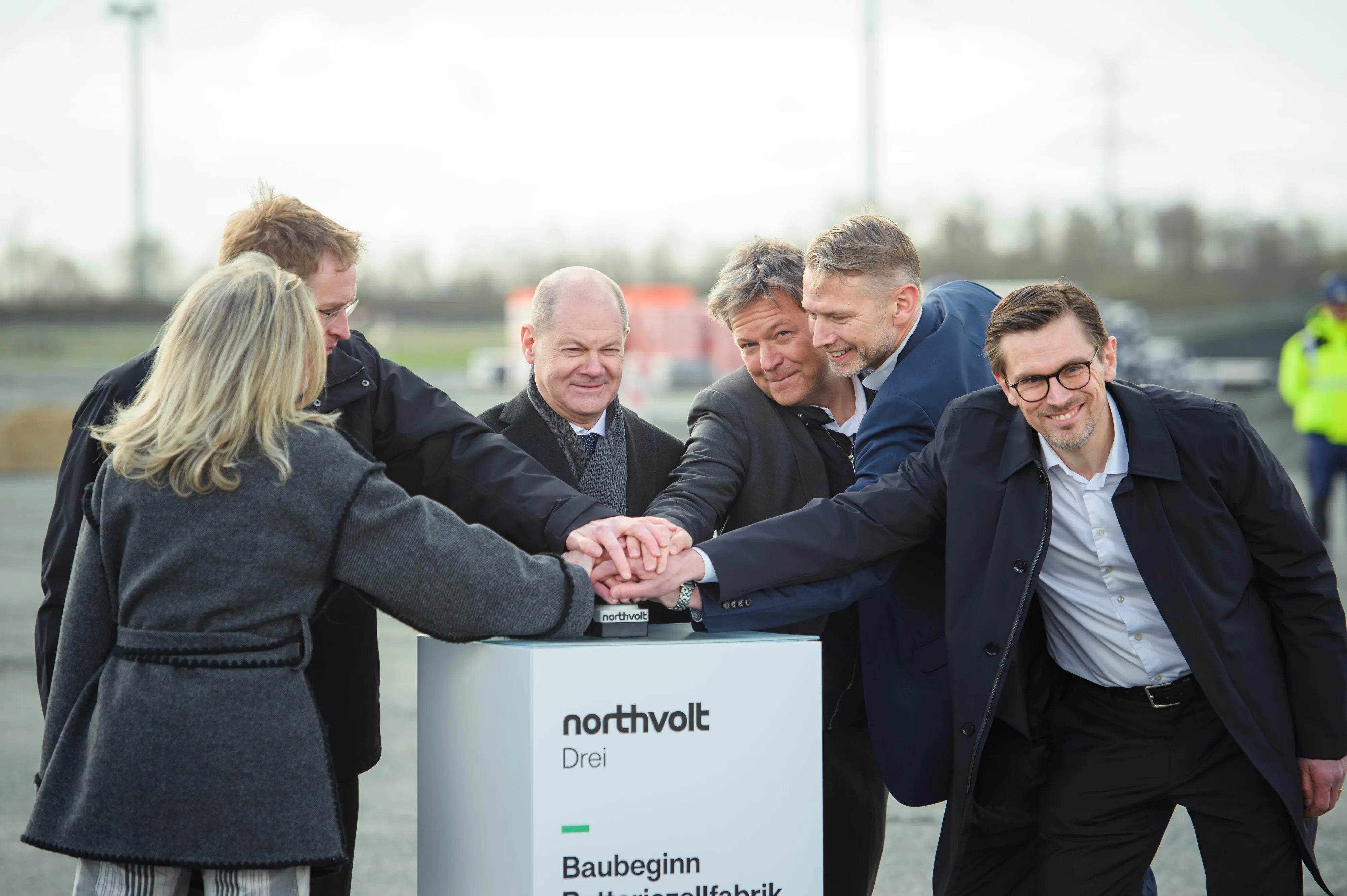 奥拉夫·肖尔茨(中)和罗伯特·哈贝克(右中)在3月的Northvolt Drei奠基仪式上。摄影师:Gregor Fischer/Getty Images就在四个月前,哈贝克甚至 敦促 Northvolt 在德国开设第二家大型工厂,以帮助其绿色转型。上周他说他的政府与该公司保持着持续的联系。