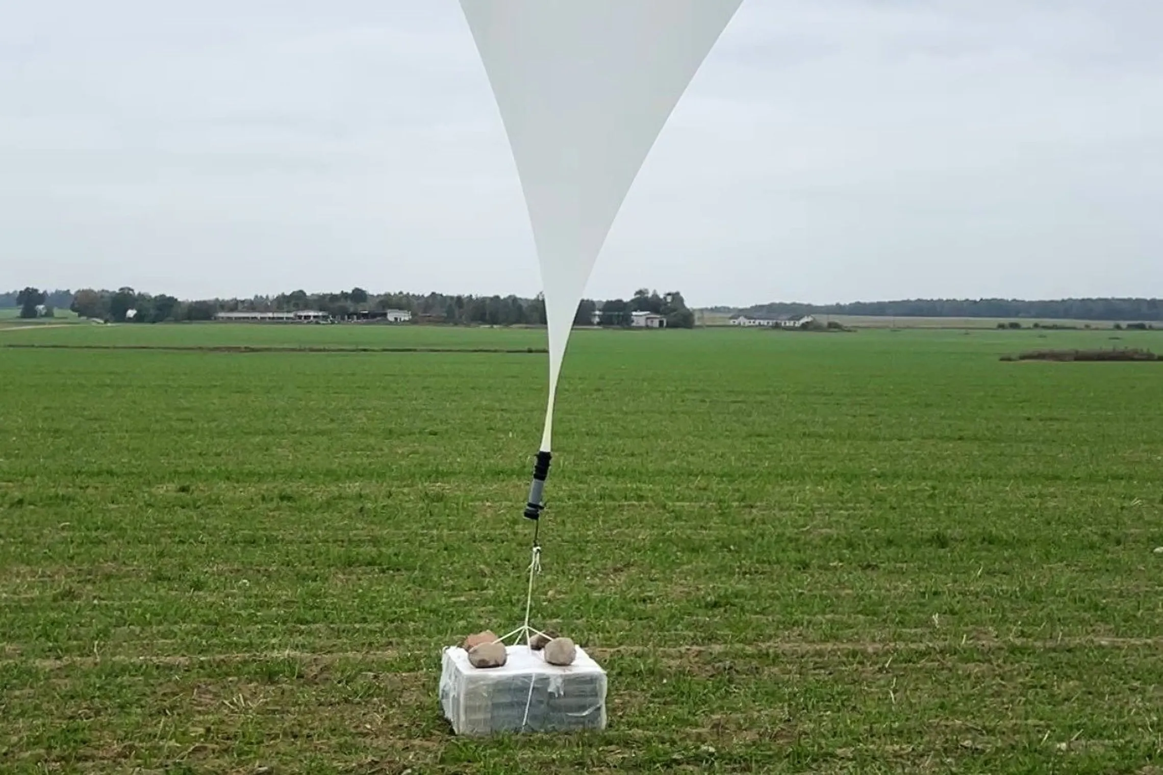 维尔纽斯——一个装有塑料包装盒的大白气球上周末从白俄罗斯漂流过境,降落在立陶宛的主要机场。