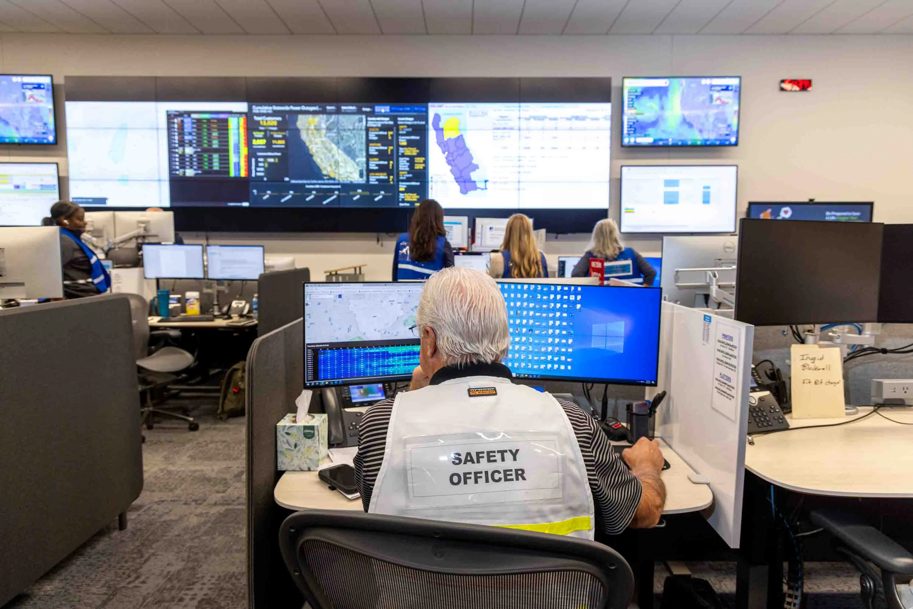 工人在加利福尼亚州瓦卡维尔的PG&E应急操作中心计划进行停电。摄影师:瑞秋·布贾尔斯基/彭博社### 值得一听