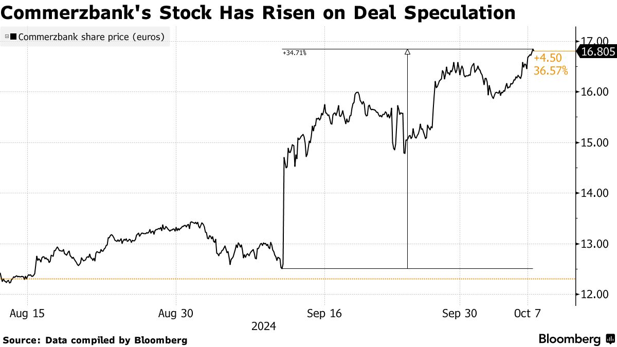 花旗集团的分析师在周一的一份报告中表示,他们认为Commerzbank的独立股价为每股16欧元,而收购报价可能将股票估值为19.50欧元。Orlopp在采访中表示,Commerzbank可以独立达到至少25欧元的股价,但没有提供明确的时间框架。