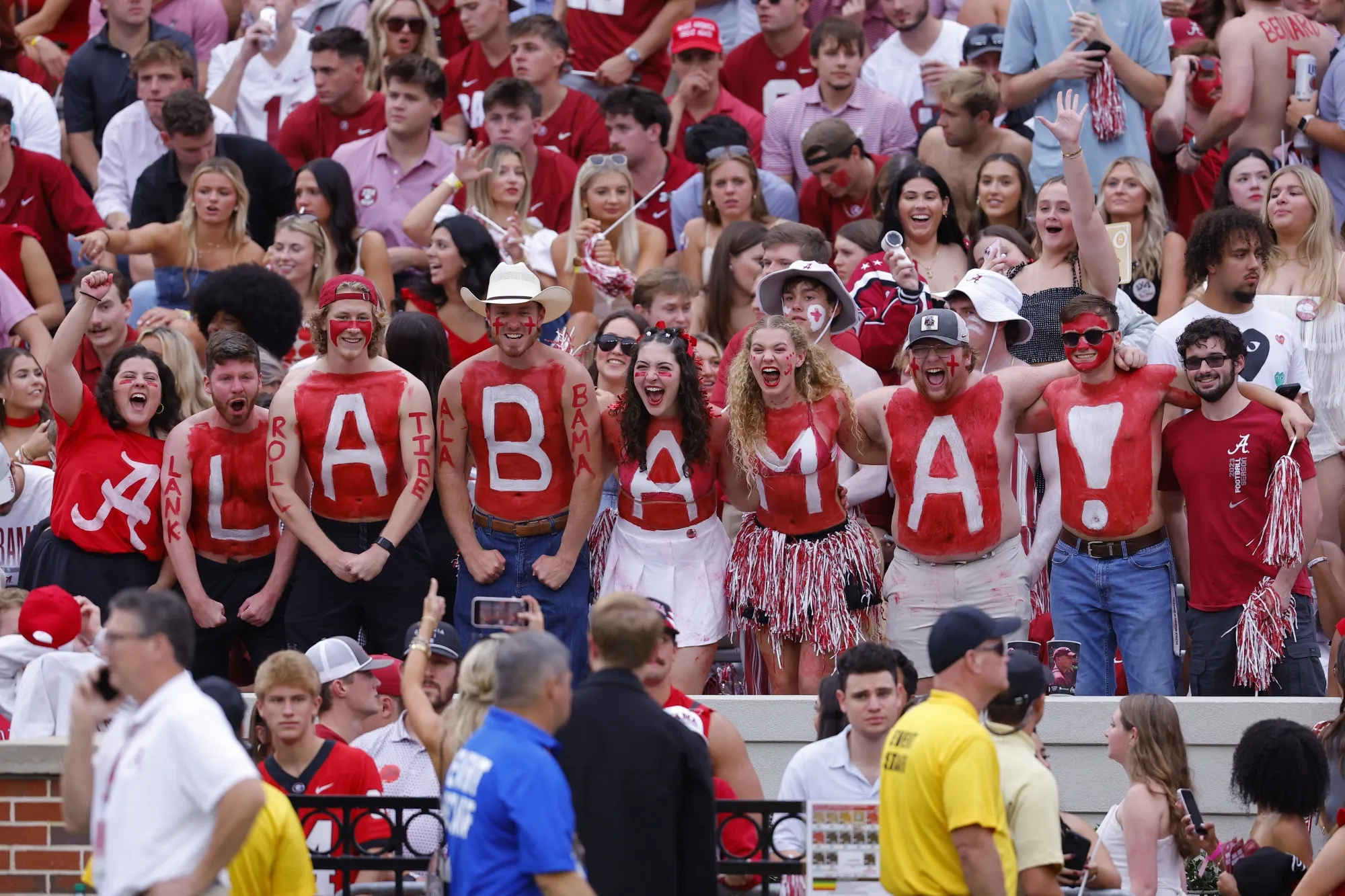 阿拉巴马州红潮队的球迷在上个月与乔治亚州斗牛犬的比赛前欢呼。摄影师:Todd Kirkland/Getty Images 北美### 你明天需要知道的事情