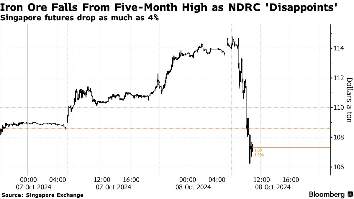 新加坡的铁矿石期货在盘中上涨后下跌了多达4%。此次简报是在中国结束为期一周的公共假期后举行的,投资者的 失望在中国市场上得到了反映。