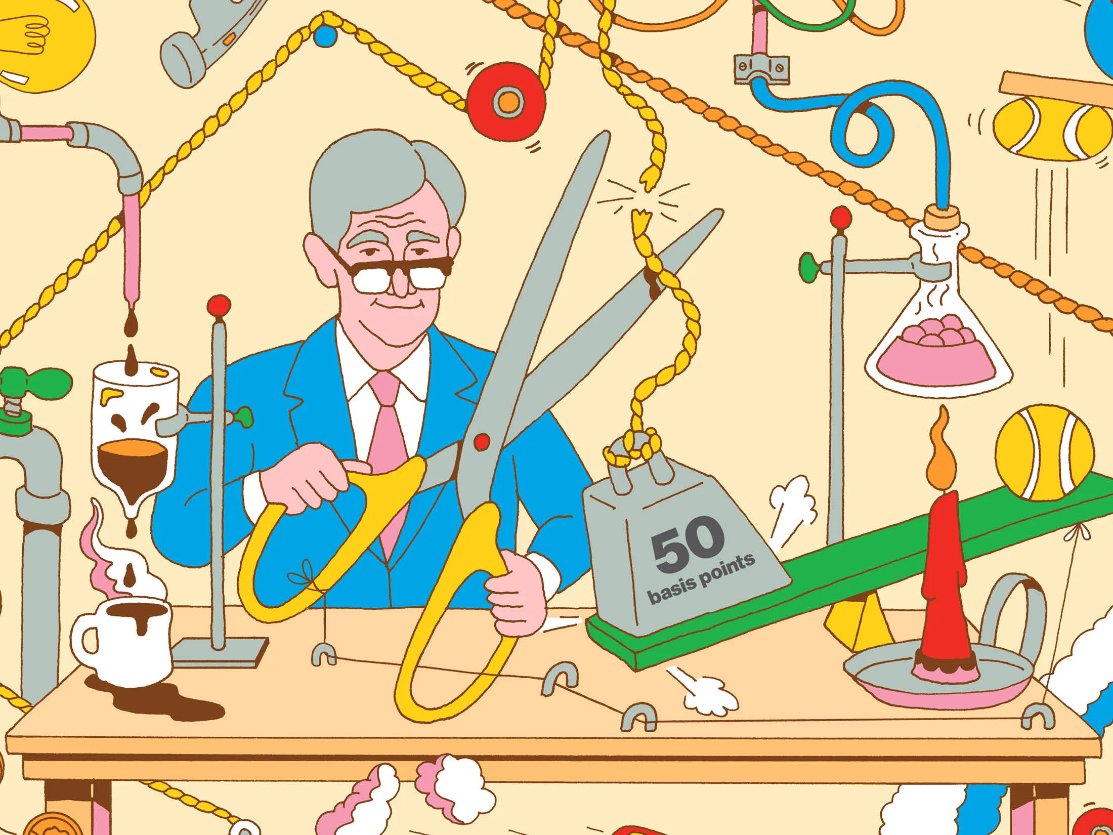 插图:Clay Hickson 为彭博商业周刊绘制美联储在九月份决定将利率降低 超出预期的50个基点,这激发了人们对随着通货膨胀放缓而可能出现更多降息的希望。这为一直在应对数十年来最高借贷成本的家庭和企业带来了缓解。