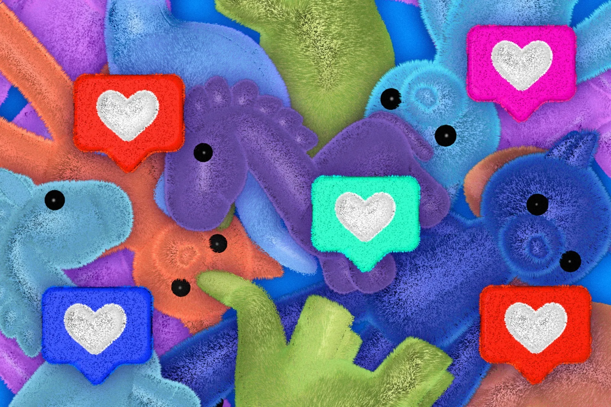 她并不孤单。在过去的四年里,Jellycat Ltd.,一家成立25年的英国公司,其独特的毛绒玩具设计售价从11美元(一个微笑的猕猴桃)到超过800美元(一个三英尺半的熊),已经从一个被名人喜爱的知名品牌变成了互联网最受欢迎的玩具之一。在TikTok上,标签#jellycat已被使用在近143,000个帖子中,用户们拆开Jellycat可颂,购买Jellycat兔子,清理床单上的Jellycat星星和彩虹等等。在中国类似Instagram的应用小红书上,也可以找到类似的帖子,标签#jellycat的帖子几乎达到了12亿个。在Reddit社区r/Jellycatplush中——该社区有27,000名成员——粉丝们分享他们的收藏照片并征求名字建议。