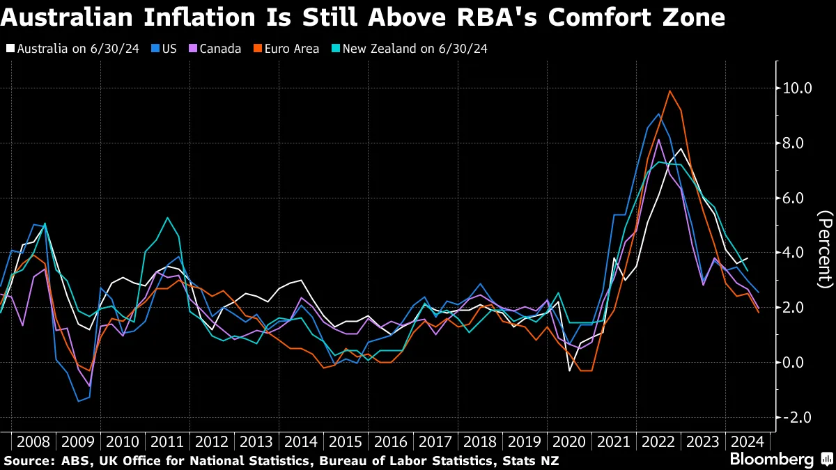 利率 将保持不变,直到通胀清楚地朝着目标可持续移动,最新的澳大利亚储备银行会议记录显示,表明货币宽松 仍然遥遥无期。但新西兰官员预计将在周三 降低借贷成本。