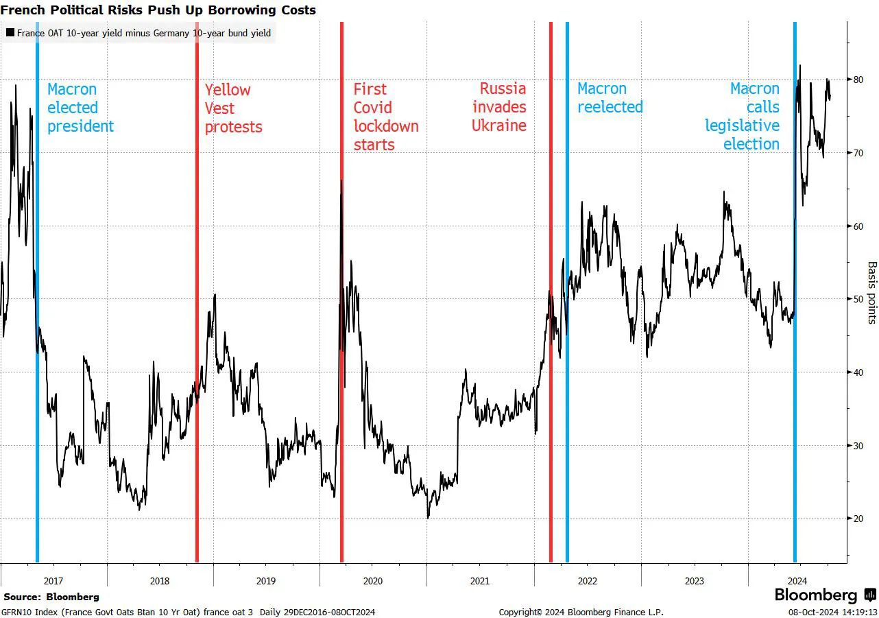 法国正面临 严峻的现实,因为它在全球投资者眼中 失宠,投资者因政治僵局和预算问题而避开该国的债券。官员们警告布鲁塞尔,仅仅要花五年时间才能将赤字降至欧盟限制。
