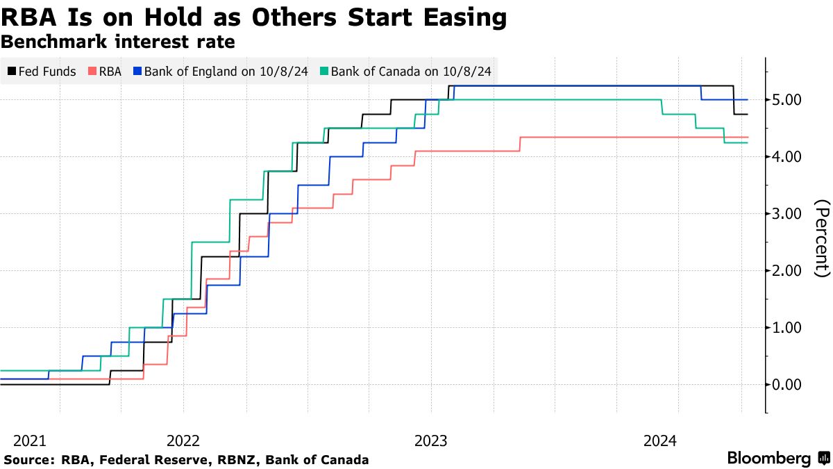 澳大利亚储备银行在2022年5月至2023年11月之间迅速加息,以试图抑制通货膨胀,但经济表现出韧性,失业率仍然低至4.2%。这有助于解释为什么行长米歇尔·布洛克在世界其他大部分地区放宽政策的时刻仍保持鹰派语气。
