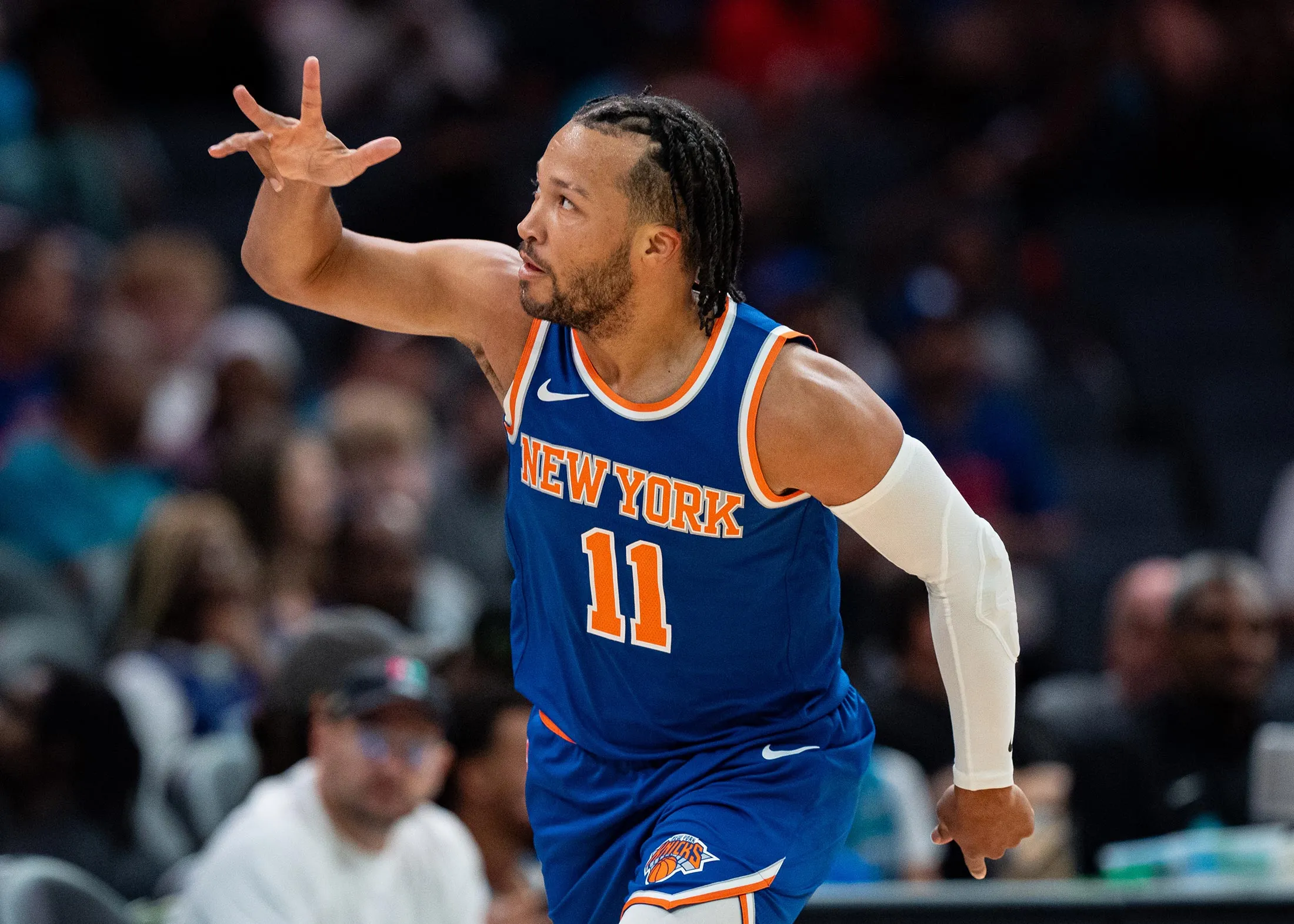 布伦森于2022年首次与尼克斯签约,他还有其他优势。在场外,他与Bose、达美航空、Dunkin’、耐克和其他品牌有合作。他还在纽约市打球,这是联盟最大的电视市场。(他在新泽西州长大,并在维拉诺瓦大学赢得了2018年男子大学年度最佳球员和全国冠军。)“像丹佛和达拉斯这样的城市很好,但它们没有纽约那种气场,”旧金山体育营销分析师鲍勃·多夫曼说。“它们没有像斯派克·李那样坐在场边的东西。尼克斯是体育界的标志性品牌。”