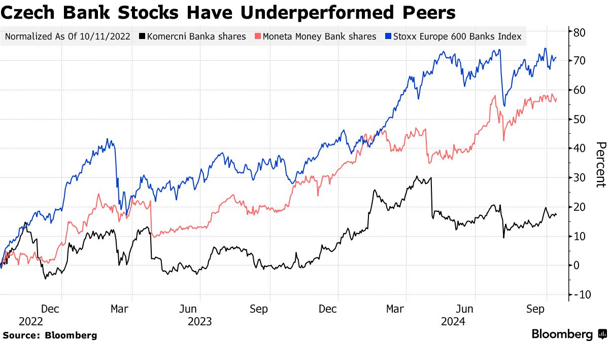 根据维也纳Erste Group Bank AG的股票分析师托马斯·乌尔格(Thomas Unger)的说法,这一举措将减少贷款增长和银行从资本缓冲中获得的利息收入。他估计,如果贷款方没有采取任何缓解措施,2025年净收入的负面影响可能对捷克商业银行(Komercni Banka AS)约为5%,对Moneta Money Bank AS约为6%。