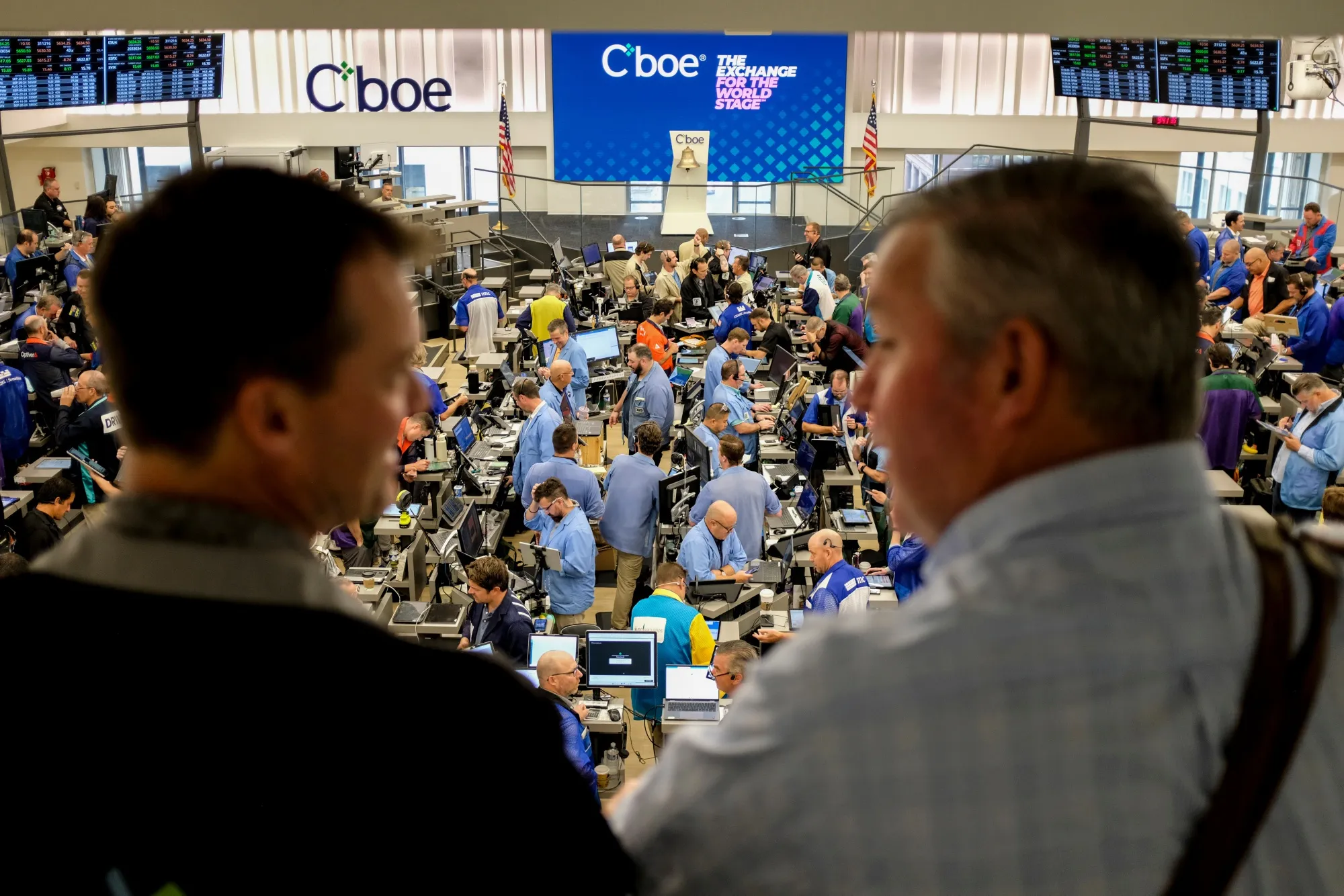 芝加哥伊利诺伊州Cboe全球市场交易所的交易员。