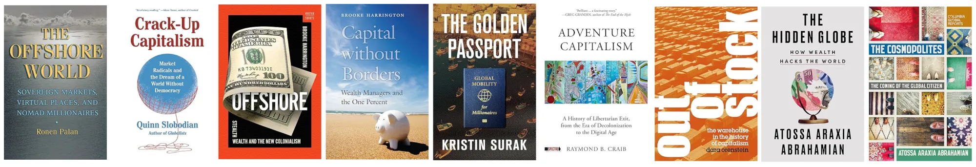我们还请Atossa推荐了一些书籍。她建议 离岸世界 由Ronen Palan著, 崩溃资本主义 由Quinn Slobodian著, 离岸 和 没有边界的资本 由Brooke Harrington著, 黄金护照 由Kristin Surak著, 冒险资本主义 由Raymond Craib著,以及 缺货 由Dara Orenstein著。