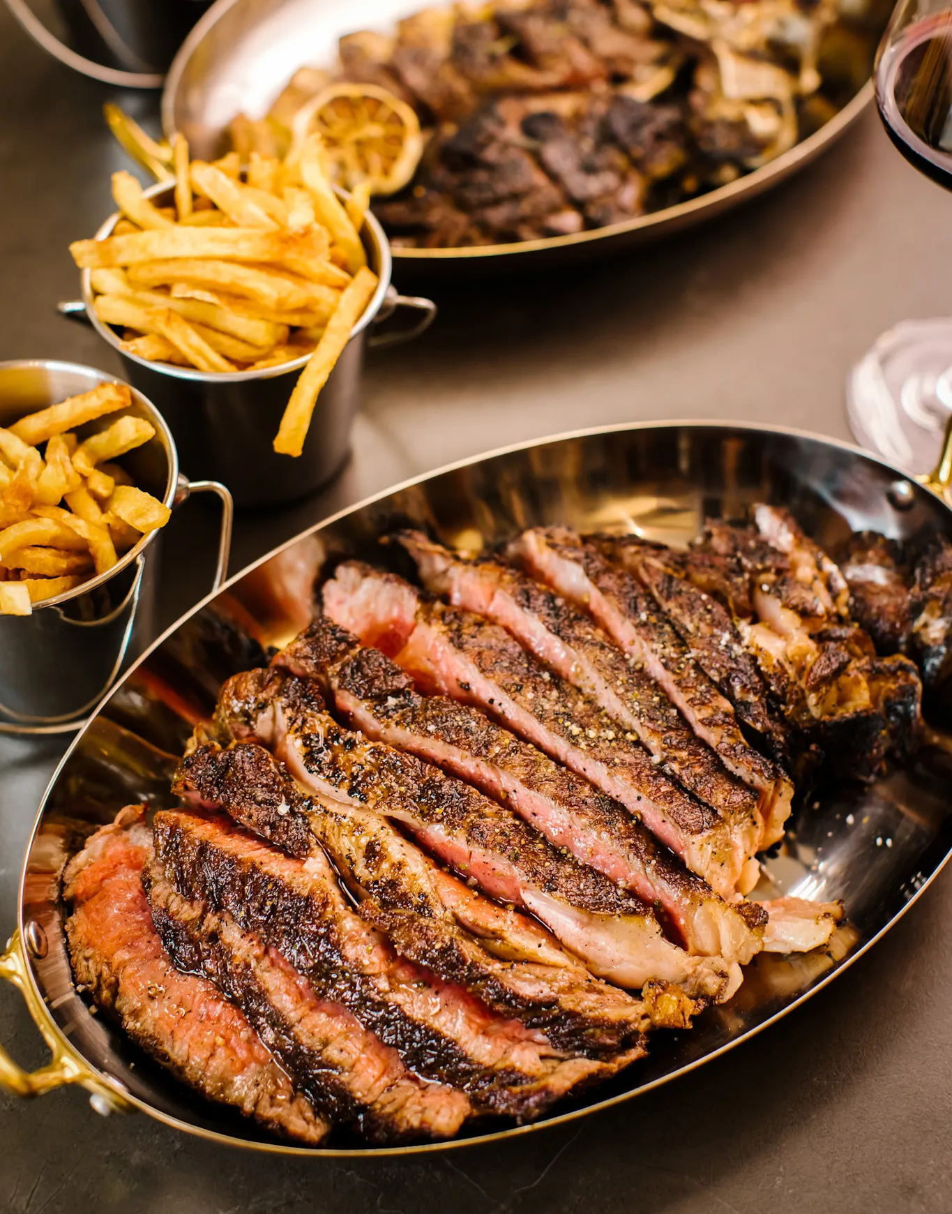 哈里斯牧场的美国优质肋眼牛排。来源:Wild Blaze我们会再次点的菜。 虽然这家餐厅自称为牛排馆,但提供的菜肴完全属于高档餐饮领域。从煎鹅肝或烤蜗牛,到来自西北西班牙的浓密大理石纹理的Rubia Gallega,搭配浓稠的肉汁,这些都是为富裕味蕾准备的丰盛美食。可以先尝试一份生蚝或丰盛的明胶骨髓,然后再切入一块干熟牛肉。