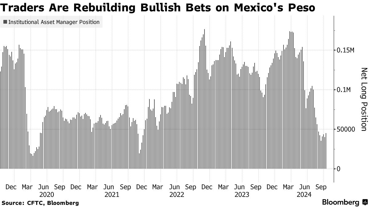 根据商品期货交易委员会截至10月8日的数据,机构资产管理者对比索的看涨情绪是一个多月以来最强的。