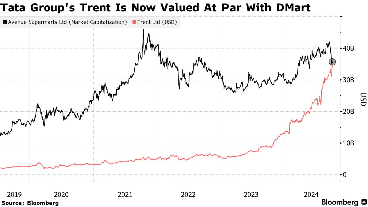 快时尚零售商Trent的市场价值在周五突破350亿美元,恰逢其董事长诺埃尔·塔塔被任命为 塔塔信托的负责人。Trent现在接近印度最有价值零售商DMart背后的Avenue Supermarts的估值。Trent的成功源于其 专注于平价时尚 和向小城市的扩展,使其股票成为今年零售界表现最佳的股票之一。Trent的股票今年上涨了约170%。与此同时,DMart正受到像Zomato这样的快速商业服务和 即将上市的Swiggy的日益普及的影响。